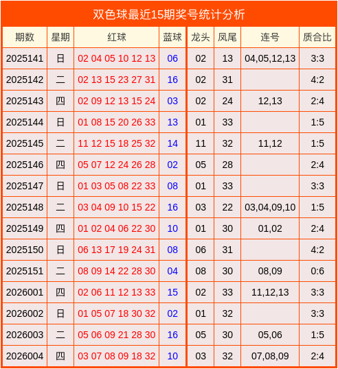 蓝球分析:最近15期蓝球号码中,质合比为4:11,偶数出现的概率较高。本期瞻望蓝球号码为06。